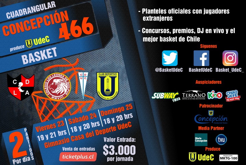 Con el fin de aprovechar el deporte como fiesta de unidad, camaradería y espectáculo, el Club Deportivo Universidad de Concepción, con el patrocinio de la Ilustre Municipalidad de Concepción, realizarán un cuadrangular de básquetbol los días 23, 24 y 25 de septiembre, en el gimnasio Casa del Deporte, en conmemoración al aniversario de la ciudad, llamado Concepción 466.