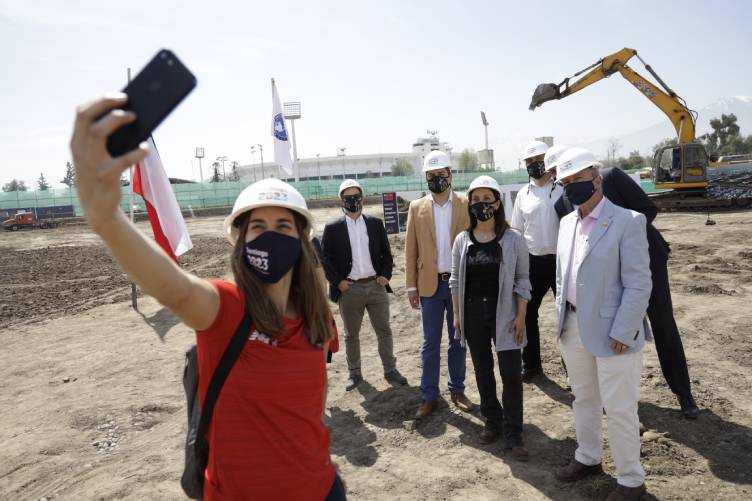 En medio del terreno donde a futuro se construirán las canchas de hockey césped en el Estadio Nacional la Ministra del Deporte recibió al presidente de Panam Sports, Neven Ilic; al Presidente del Comité Olímpico,…