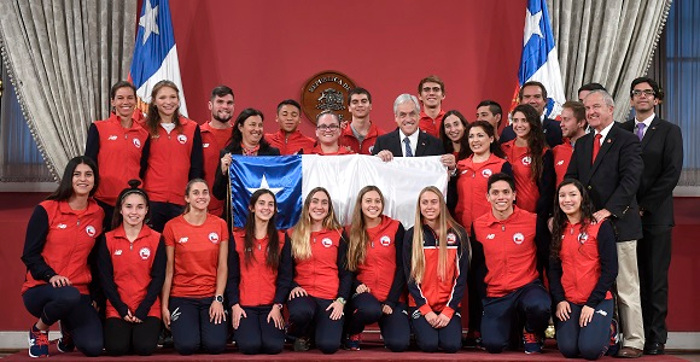 El Presidente Sebastián Piñera, acompañado por la ministra del Deporte, Pauline Kantor, entregó este martes la bandera de Chile a la pesista María Fernanda Valdés, quien será la abanderada nacional en los Juegos Sudamericanos de…